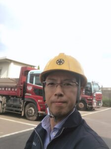 こちら・・・M会社さんの会社案内を作成する為、撮影に立ち会った時に、生まれて初めてダンプカーに乗せていただきました!
